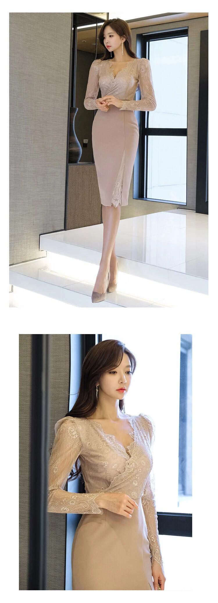 ワークスタイルレディマルペンシルドレス通勤オフィスセクシー V ネックスリムミディパーティー Vestidos Vネック 会社 学校 通勤や通学にも