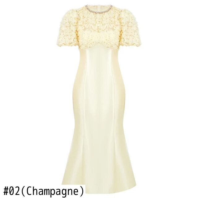 高級ダイヤモンドイブニングドレスかわいい甘いパフスリーブスリムパーティードレス Vestidos フィエスタローブ 大人ガーリー スウィート キュート カジュアル