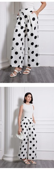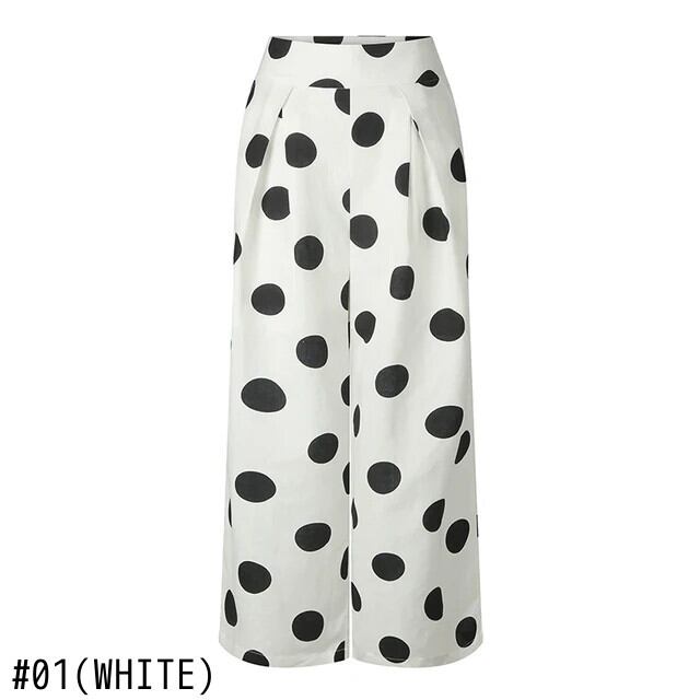 プラスサイズ mal コットンリネンロングパンツドットプリントズボンワイドレッグルーズパンツストリート 大きめサイズ ワイドパンツ