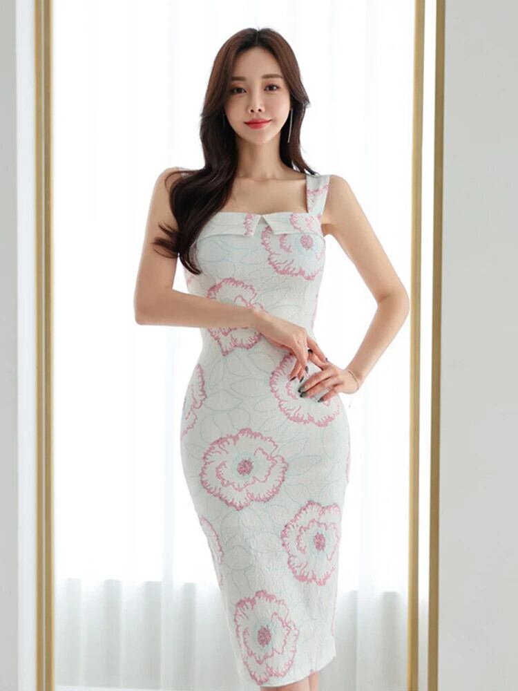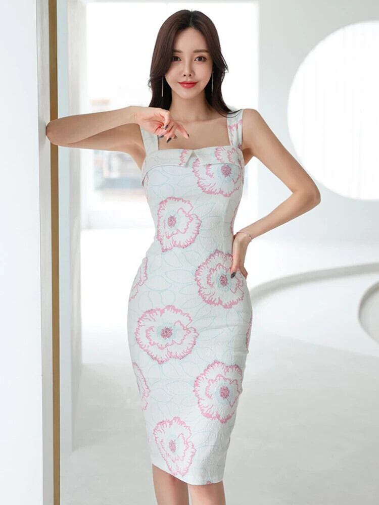 夏甘い花柄イブニングドレスセクシースリング胸ラップスリムミディパーティー誕生日 Vestidos 大人ガーリー スウィート キュート カジュアル サマー 夏物
